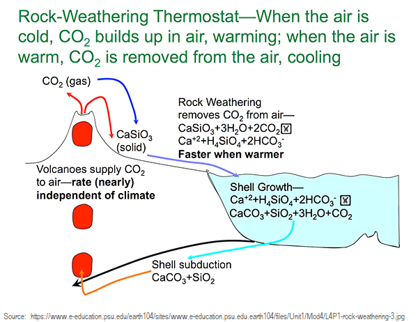 releases CO2 to the atmosphere. That raises atmospheric CO2 levels, which causes warming,